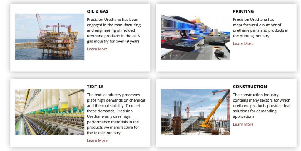 Urethane Industrial Products has a great example of an industries served and use cases page.